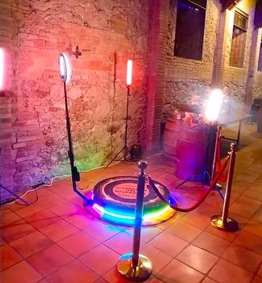 Si buscas algo diferente, nuestro videomaton 360 de Lleida es el elegido. Con máquina de humo, luces periféricas de leds, grabación de vídeo en 5k, vídeos personalizados en todos los vídeos, y también con logo.